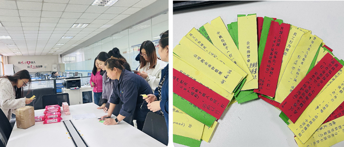 9月19日至20日期间,员工们纷纷利用工作间隙驻足参与,指尖轻摘灯谜,仔细思索谜底后,前往行政部提交答案。每一次 “答对” 的喜悦,都伴随着一份中秋好礼的兑现,小小的灯谜不仅考验着大家的智慧,更串联起同事间的互动与笑意。