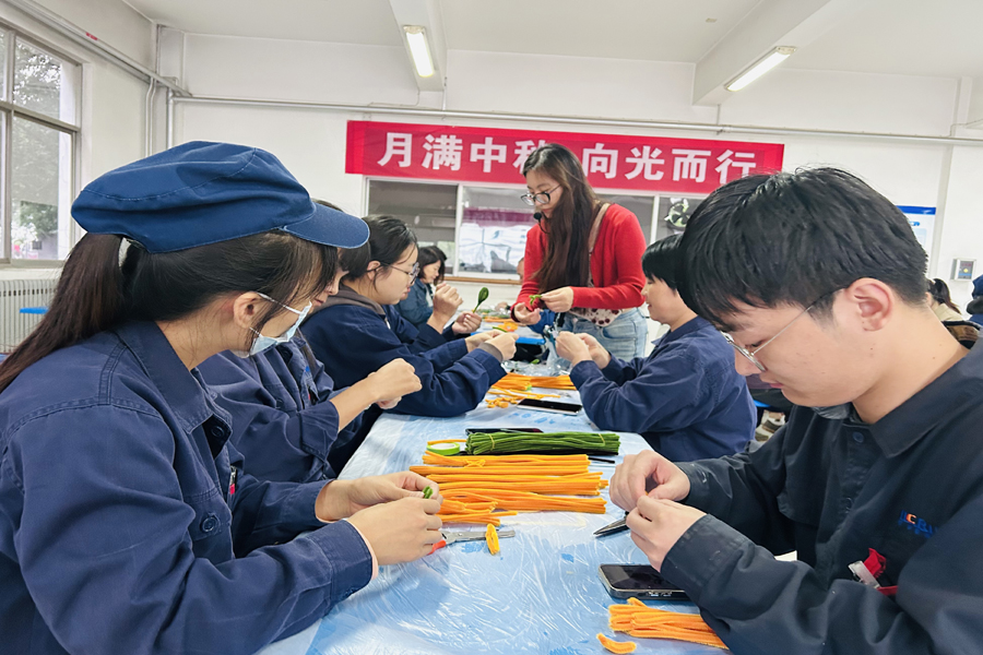 9月22日,中秋活动迎来第二阶段 —— 向日葵手工制作环节。向日葵象征着阳光、希望与团圆,恰如科森制药对每一位员工的美好期许。活动以 “协作” 为核心,按照规则,3人组成一组,成员们分工配合、默契协作,共同向 “完成7朵向日葵制作” 的目标迈进。